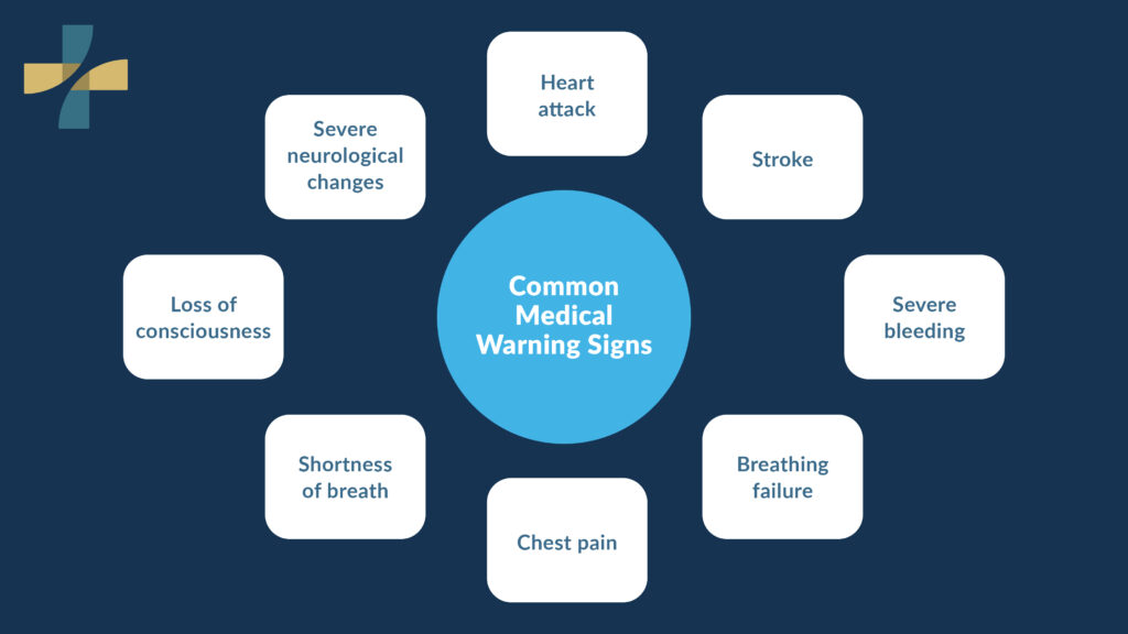 When symptoms affect breathing, circulation, or brain function, they become hospital emergency signs.